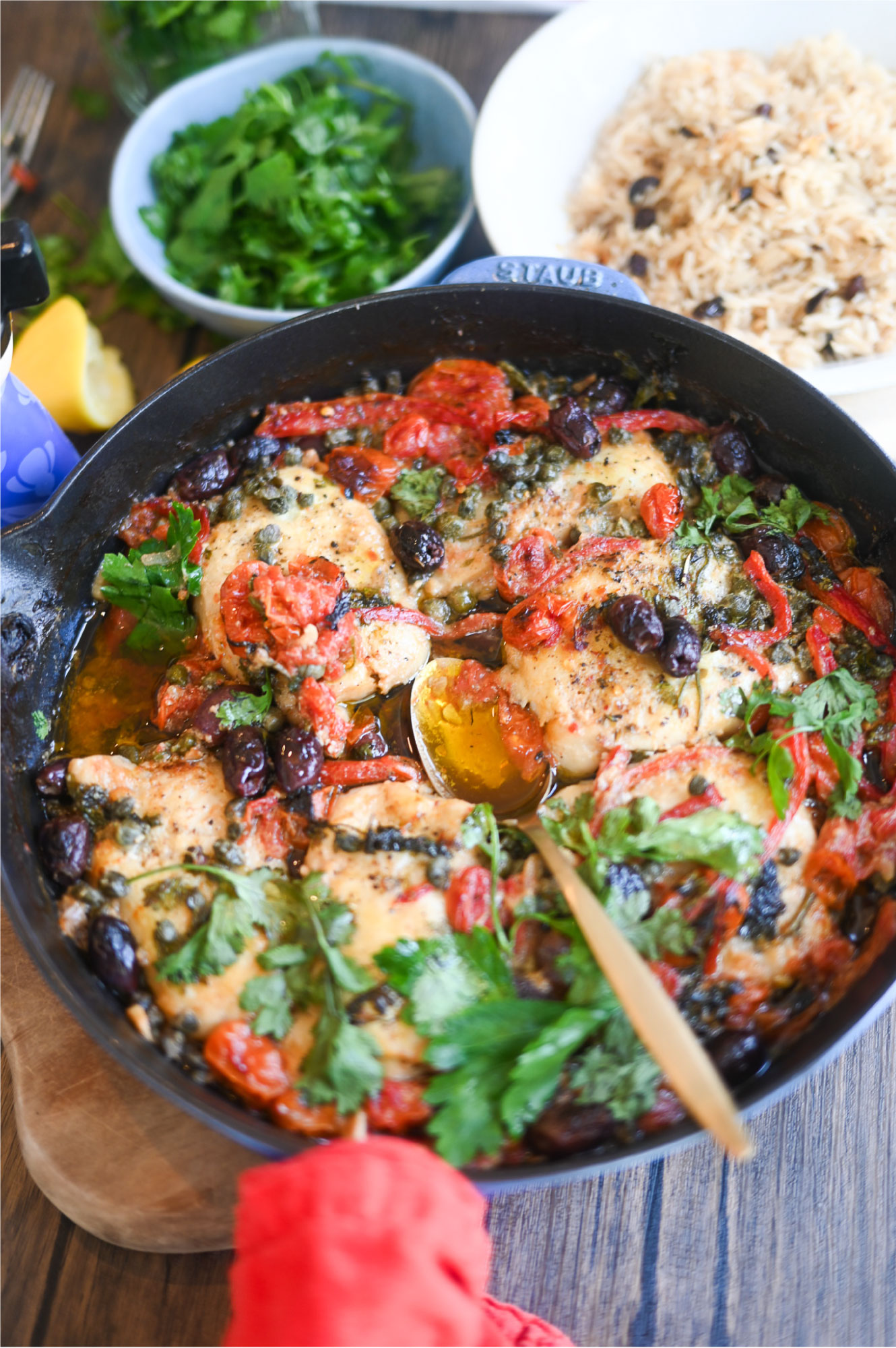 Añade los tomates, aceitunas, alcaparras, orégano seco y hojuelas de chile. Cocina durante 2-3 minutos, permitiendo que los sabores se mezclen.