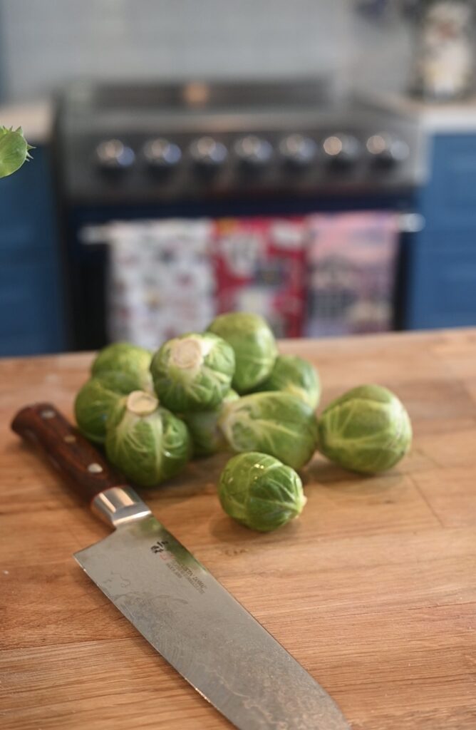 - 1 libra de coles de Bruselas, cortadas y en rodajas finas