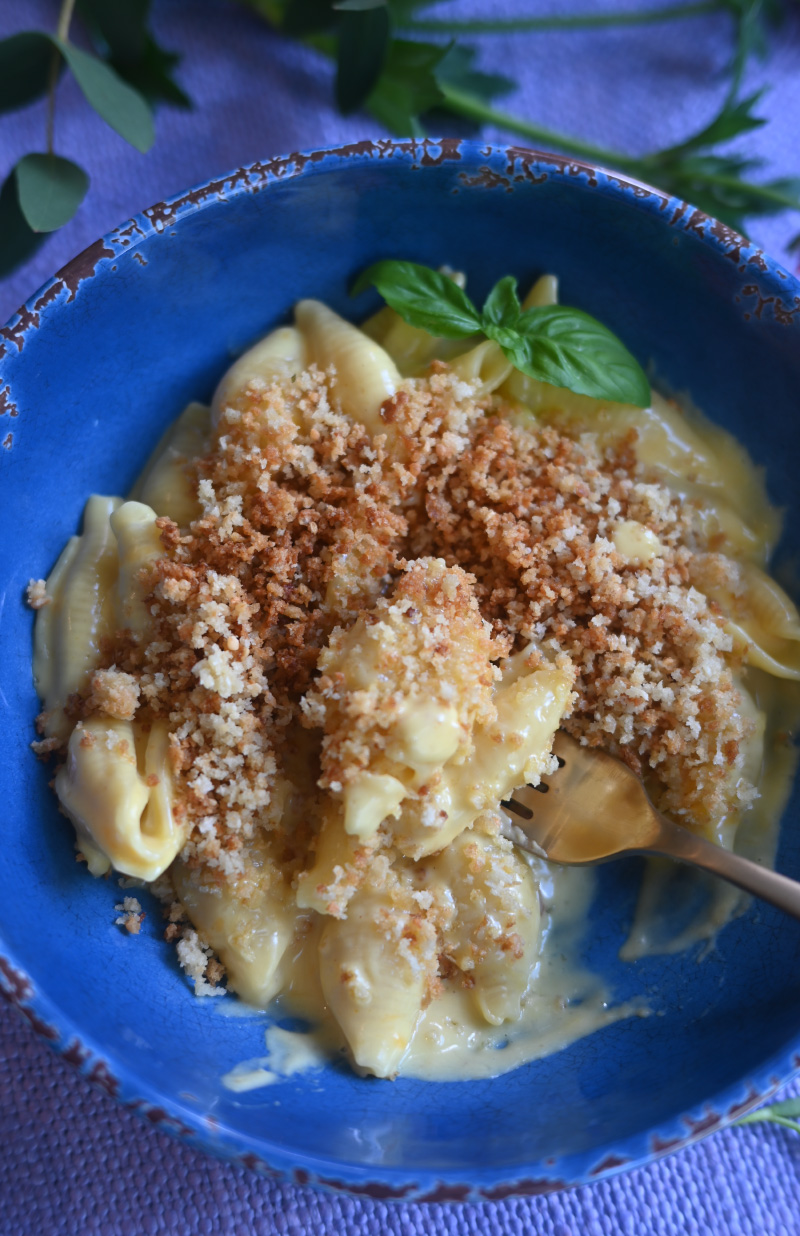 Esta receta es muy fácil y tiene algunos ajustes diferentes de la receta original, pero es una pasta cremosa y crujiente debido a la mezcla de mantequilla, queso parmesano y migas de pan Panko en la parte superior. ¡Espero que les guste la receta y puedan disfrutarla tanto como nosotros!