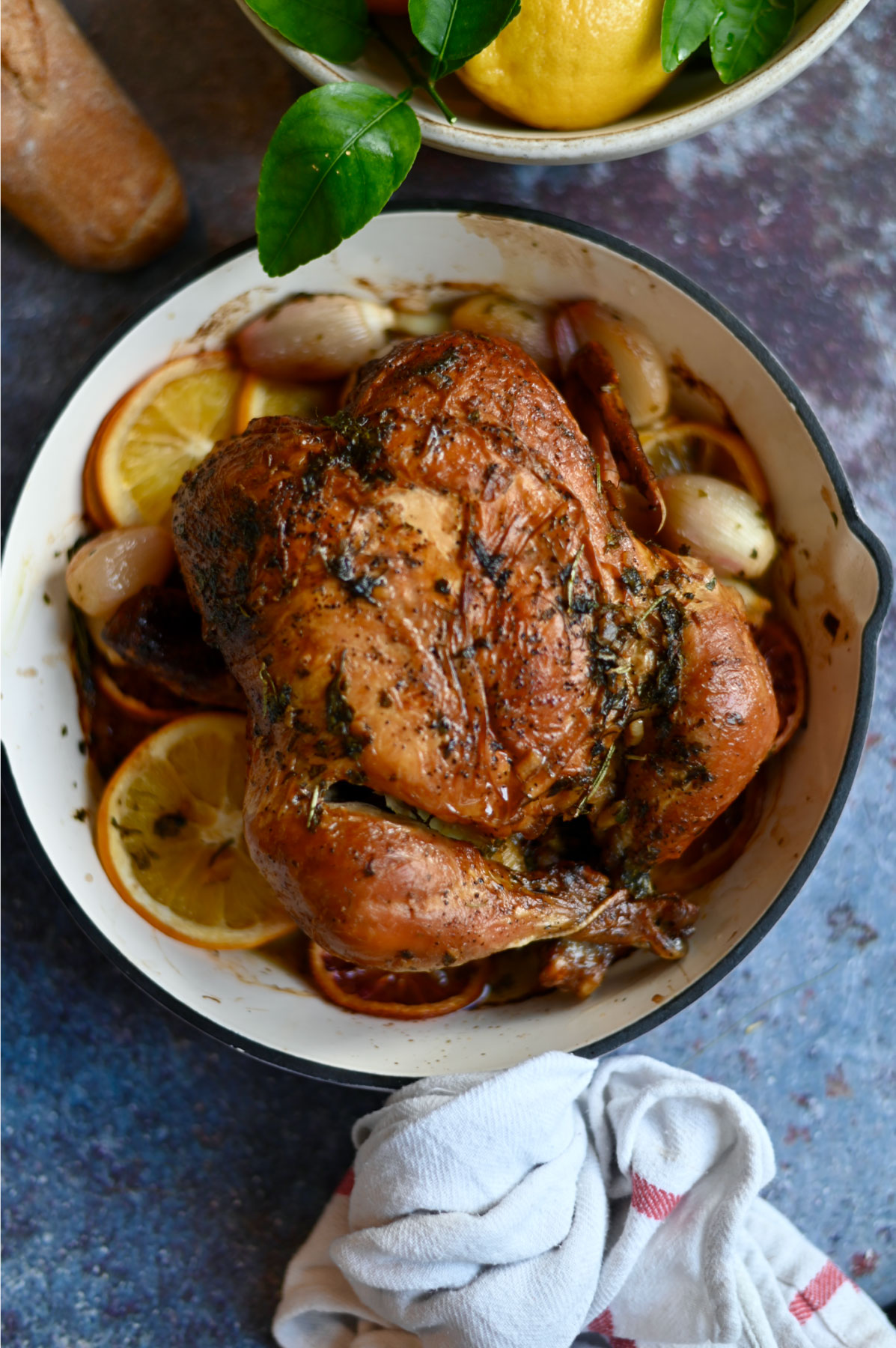 This citrus-infused chicken recipe is delicious and easy to prepare, perfect for festive occasions. It’s simple, uncomplicated, and pairs well with any side dish. You can use various citrus fruits according to your preference, allowing your imagination to guide the choice. Additionally, you can change the herbs based on what you have available, as the star here is the citrusy touch that imparts a deep flavor to the baked chicken. Enjoy this tasty and versatile option for your festive meals!