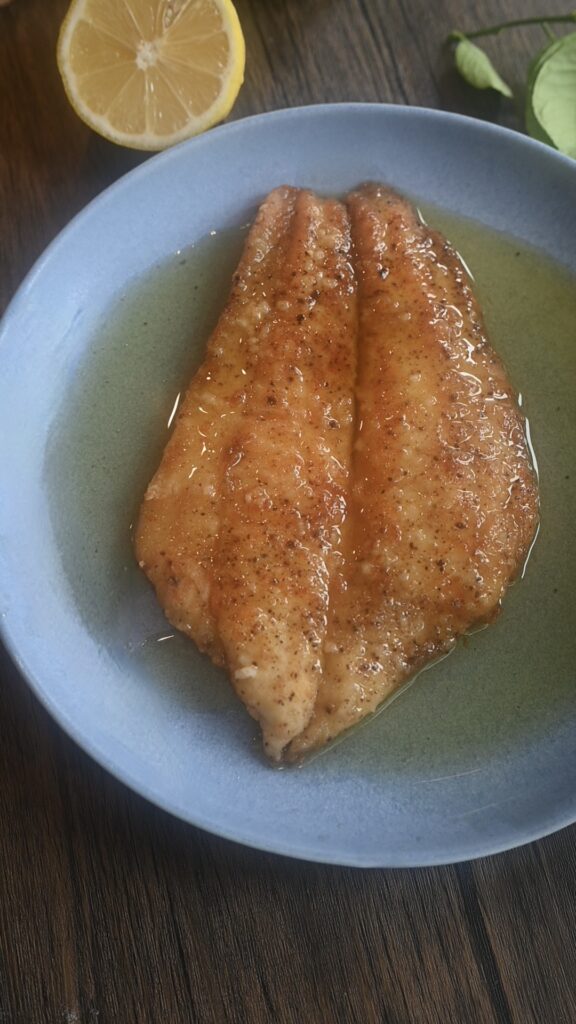 ole meunière, destaca los sabores simples de pescado fresco, mantequilla, limón y perejil. El pescado es el centro del plato, por lo que es importante usar un filete de calidad, yo utilice un filete de lenguado (Flander).